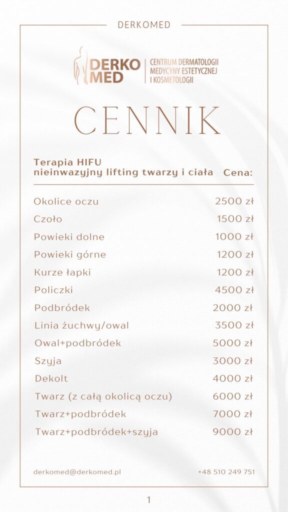 Cennik zabiegów medycyny estetycznej, dermatologii i kosmetologiiTarnowskie Góry